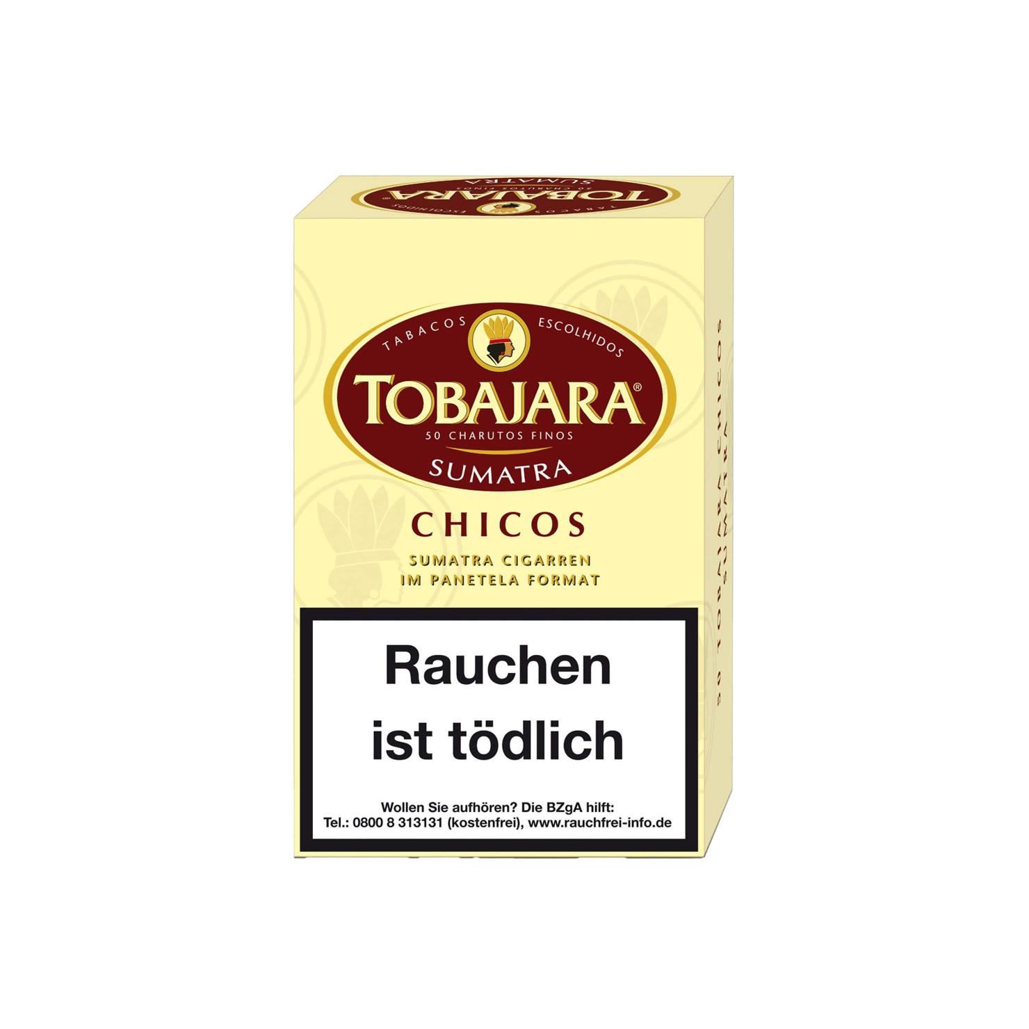 Die TOBAJARA Chicos Sumatra Zigarren stehen mit ihrer Länge von 135mm für eine kürzere Rauchdauer vom intensiven Geschmacoksprofil karibischer Tabake. Durch die Alu-Einzeverpackung eignen sich die Zigarren gut für unterwegs.